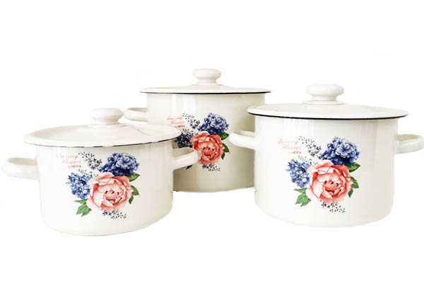 Набор эмалированный 272 состоит из трех цилиндрических кастрюль разного объема. Он представлен в современном стильном дизайне, прост в уходе, экологичен и долговечен. Он украсит любую кухню, а также может быть отличным подарком.