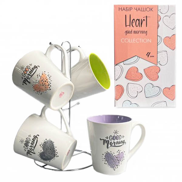 Набор чашек 350мл на стойке 4 предмета COLOR2