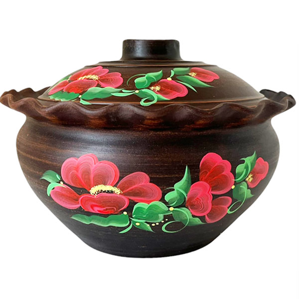 Макитра 2.5л волна Мак с крышкой красная глина