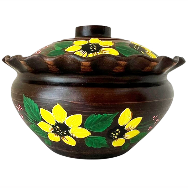 Макитра 2.5л волна Подсолнух с крышкой красная глина