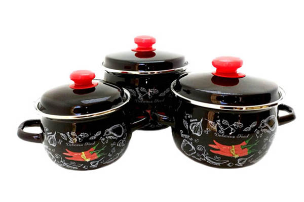 Набір емальований 948 складається з трьох сферичних каструль різного об’єму. Він екологічний, довговічний та має стильний дизайн.
