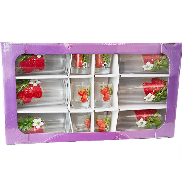 Набір склянок високих 6 стаканів + 6 чарок Полуниця