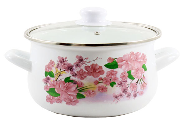 Каструля емальована 4л Сакура зі скляною кришкою In