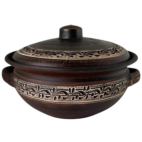 Шашличниця 2.5л гончарна ангоб з ручками і кришкою червона глина